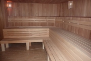 Русская баня, с температурой воздуха в пределах 50-60 0С, влажность 40-60 %. Баня выполнена из кедра, полки выполнены из дерева абаши, подсветка осуществляется специальными светильниками. Предусмотрено оборудование аварийного пожаротушения. Электрическая печь и парогенератор подобраны таким образом, чтобы поддерживать требуемый температурно-влажностный режим в бане автоматически.