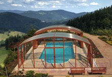 - Продление купальное сезона. Плавающие покрытия позволяют сохранить тепло воды в бассейне даже при низких ночных температурах воздуха, а применение раздвижного павильона позволяет эксплуатировать открытый бассейн круглогодично.