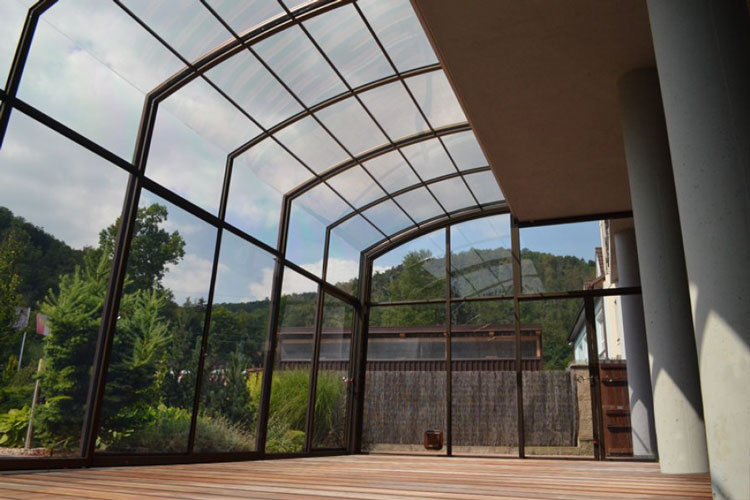 Главное назначение и преимущество раздвижного павильона в том, что любая открытая площадка может быть легко и быстро закрыта прозрачным павильоном от непогоды и холода. Европейский дизайн и заводское изготовление в Европе являются неоспоримыми преимуществами. Сборка и установка павильона производится за 1-2 дня (в зависимости от размера и формы).